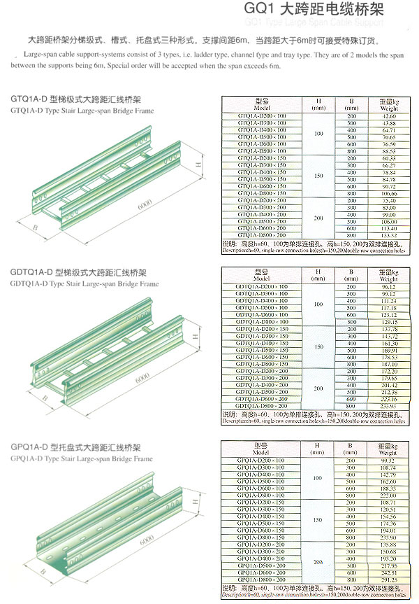 分梯級式、槽式、托盤式三種形式。支撐間距6m,當跨距大于6m時可接受特殊定制。