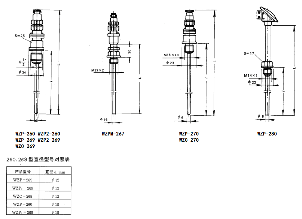WZP-260 | Pt100 | 0-100 | < 30S | 1Cr18Ni9Ti |