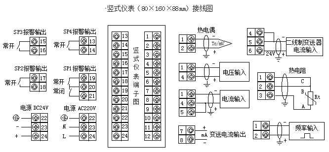 熱電偶: K、E、S、B、J、T、R、WRe3-25;冷端溫度自動補償范圍0~50℃,補償準確度±1℃。